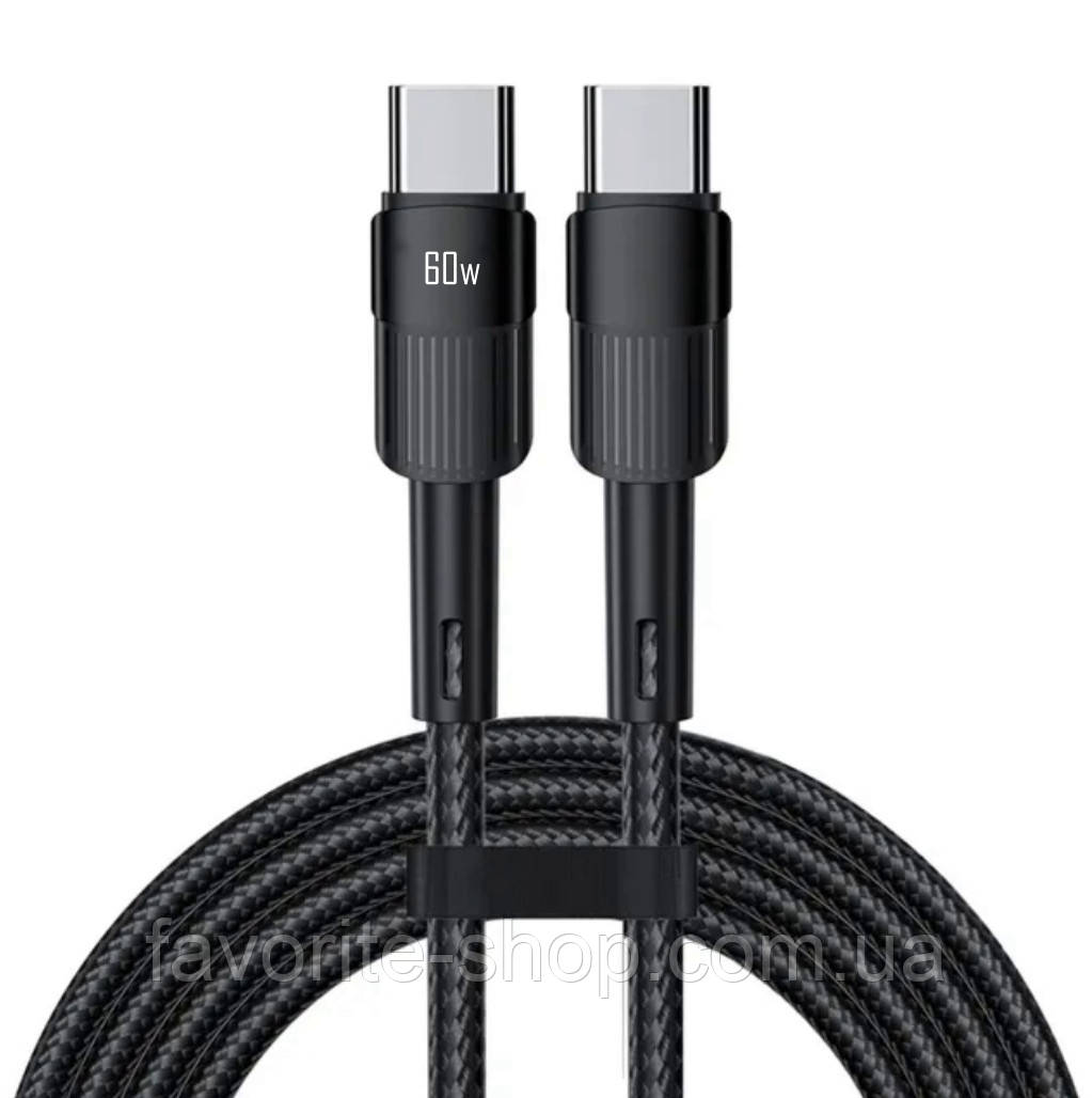 Кабель для зарядки і передачі даних, оснащений 2 роз'ємами Type-C. Основні характеристики: - інтерфейс входу/виходу: Type-C; - максимальна потужність: 60 Вт; - підходить для ноутбуків, смартфонів і інших гаджетів з Type-C-портом; - підтримує протоколи швидкої зарядки (PD, QC 3.0, FCP); - швидкість передачі даних: 480 Мбіт/с; - матеріал: АБС-пластик + термоеластопласт; - в комплекті фіксатор на липучці; - вбудований інтелектуальний захист; - довжина: 1.0 м. Зручне використання. Кабель сумісний з ноутбуками, смартфонами, планшетами, ігровими приставками й іншими пристроями, оснащеними роз'ємом Type-C. Швидкість передачі даних до 480 Мбіт/с дозволить синхронізувати пристрої і передавати файли за лічені секунди. Швидка зарядка. Кабель підтримує сучасні протоколи швидкої зарядки, включаючи PD, QC 3.0, FCP, і може забезпечити потужність до 60 Вт, заряджаючи вашу електроніку за мінімальний час. Наприклад, для повної зарядки MacBook Pro достатньо всього 2 годин. Захисні властивості Вбудований смарт чип розпізнає підключений пристрій і визначає оптимальні силу струму і напругу. Це оберігає акумулятор від короткого замикання, перегріву і надмірної зарядки. Корпус конекторів виготовлений з міцного зносостійкого АБС-пластику. Обплетення з гнучкого термоеластопласту захищає кабель від пошкоджень при згинанні - він не рветься і не тріскається.
